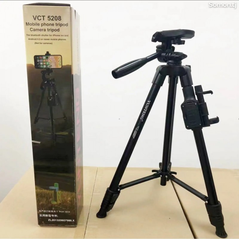 Алюминиевый штатив YUNTENG VCT 5208 RM с 3-сторонней головкой и пультом дистанционного управления для камеры с зажимом для держателя телефона